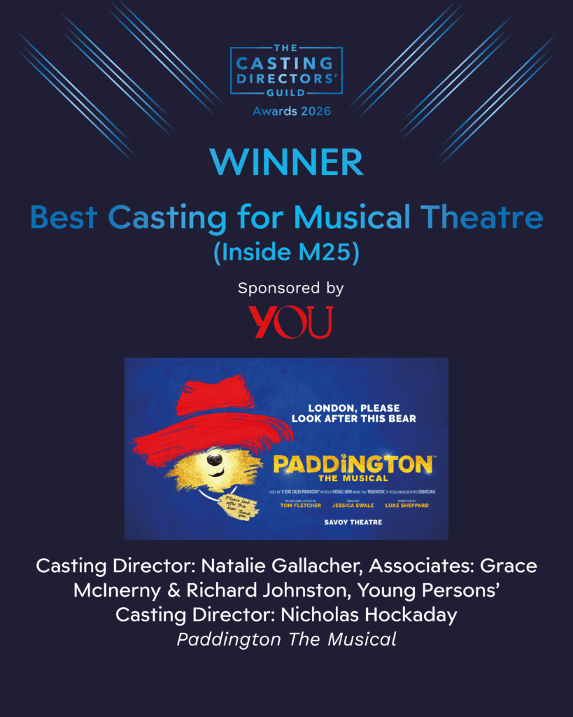 WINNER: Paddington The Musical | Casting Director: Natalie Gallacher, Associates: Grace McInerny & Richard Johnston,Young Persons’ Casting Director: Nicholas Hockaday